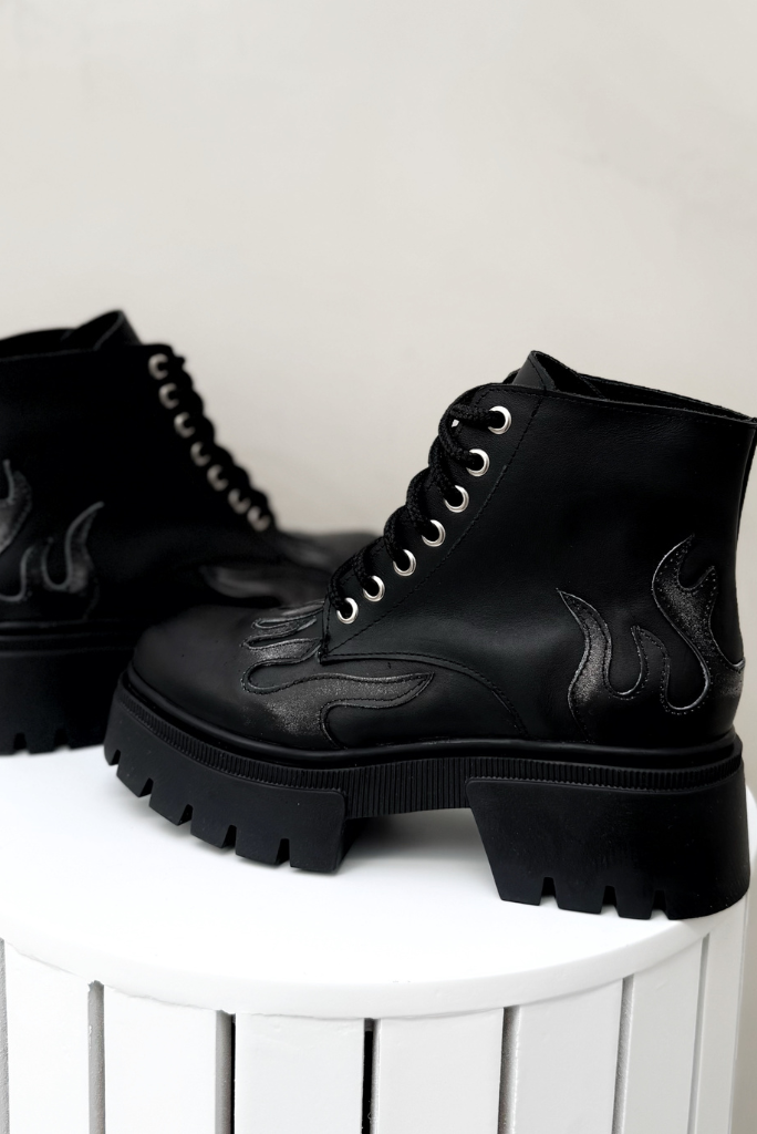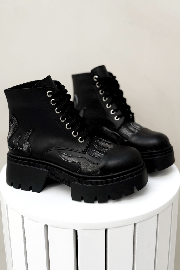 Borcego Flam Cuero Negro: un calzado elegante y resistente, perfecto para cualquier ocasión. Confeccionado en cuero de alta calidad y detalles sutiles, ofrece un toque de sofisticación. Su suela de goma antideslizante proporciona seguridad.