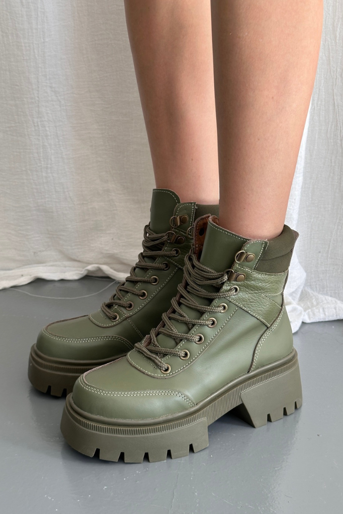 ¡Descubre el estilo urbano con el BORCEGO GLAM CUERO VERDE!