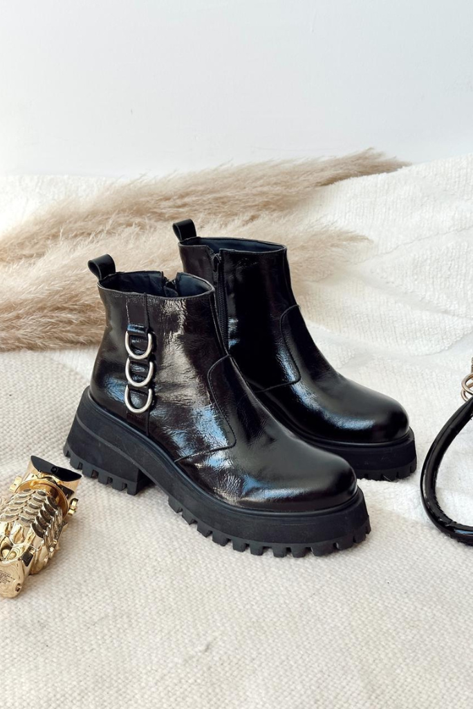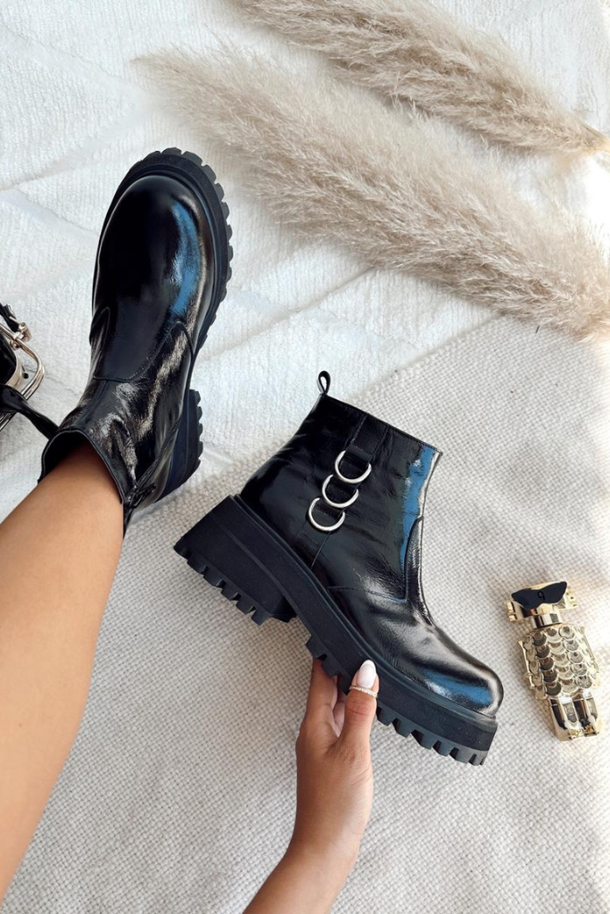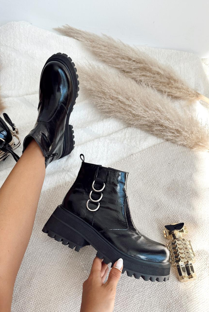 Descubrí el BORCEGO CORTO DE CHAROL CON ARGOLLAS DECO, el complemento ideal para looks urbanos y sofisticados. Su acabado en charol y detalles de argollas deco resaltan cualquier outfit, mientras que su diseño cómodo te acompaña todo el día. ¡Animate a destacar con personalidad!