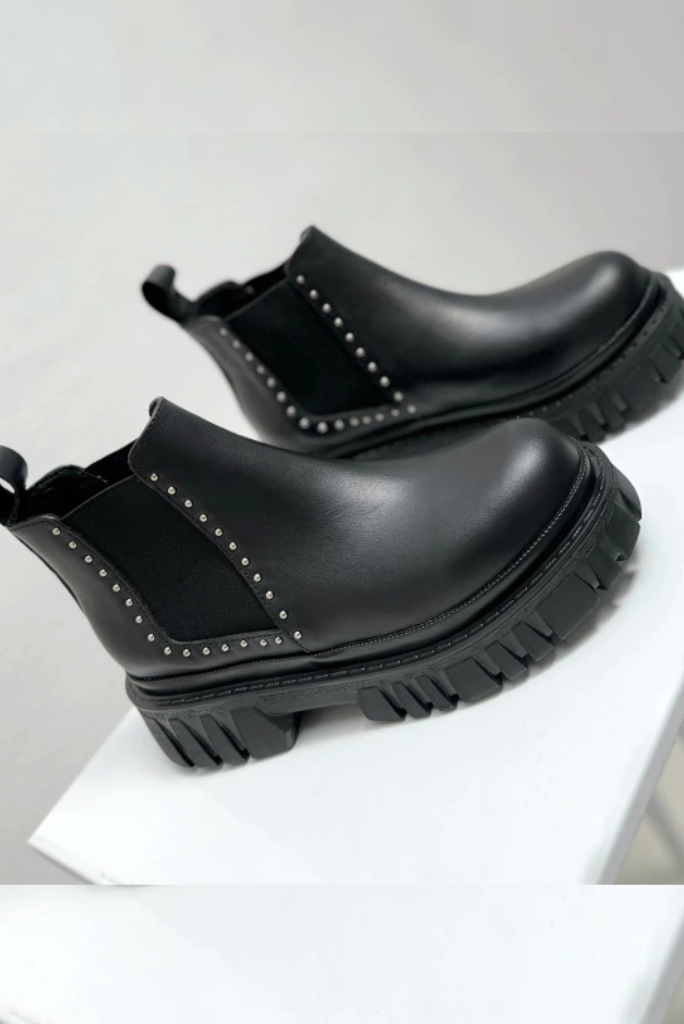 Descubrí el borcego FLOR, de cuero con plataforma y detalles de tachas, una opción ideal para quienes buscan sumar estilo y personalidad a sus looks. Su base elevada otorga comodidad y altura, mientras que las tachas metálicas marcan tendencia. Fabricado en cuero genuino, es resistente y fácil de combinar. Perfecto para outfits urbanos o casuales. ¡Animate a destacarte esta temporada!