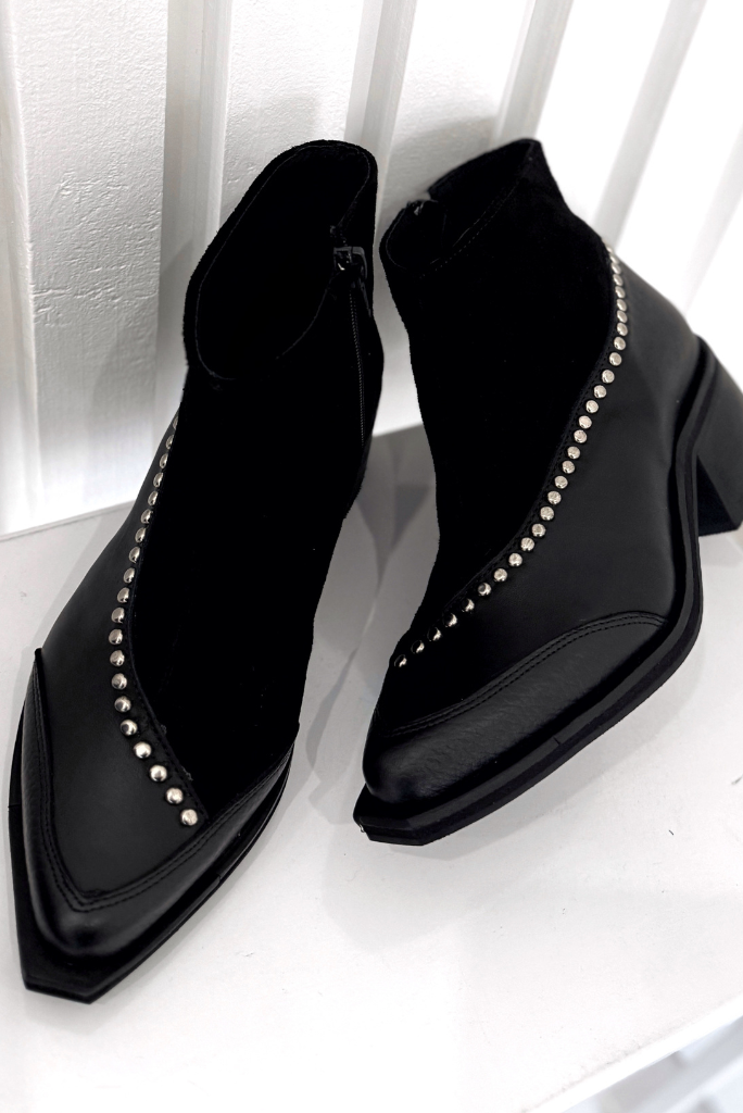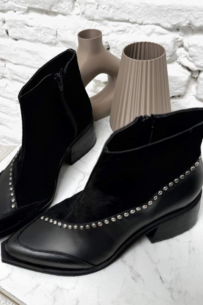 Descubre la Botineta Musi Negro, una fusión excepcional de cuero y gamuza que redefine la elegancia y versatilidad. Su diseño moderno y confortable es ideal para cualquier ocasión, desde un día en la ciudad hasta una salida nocturna.