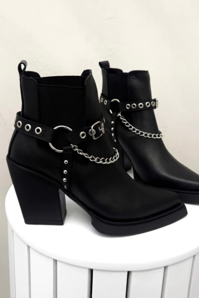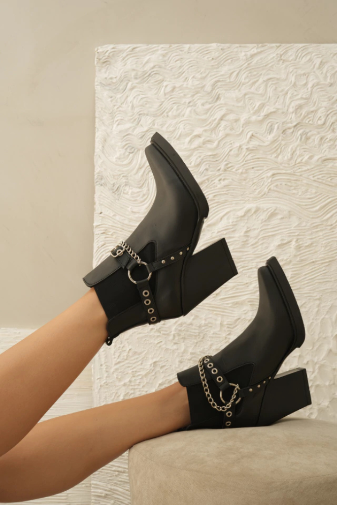 Descubre las Botinetas Ona Cuero Negro, un calzado que combina estilo y confort con su taco ancho robusto. Estas botinetas están confeccionadas en cuero negro de alta calidad, ideales para quienes buscan un diseño moderno sin sacrificar comodidad.