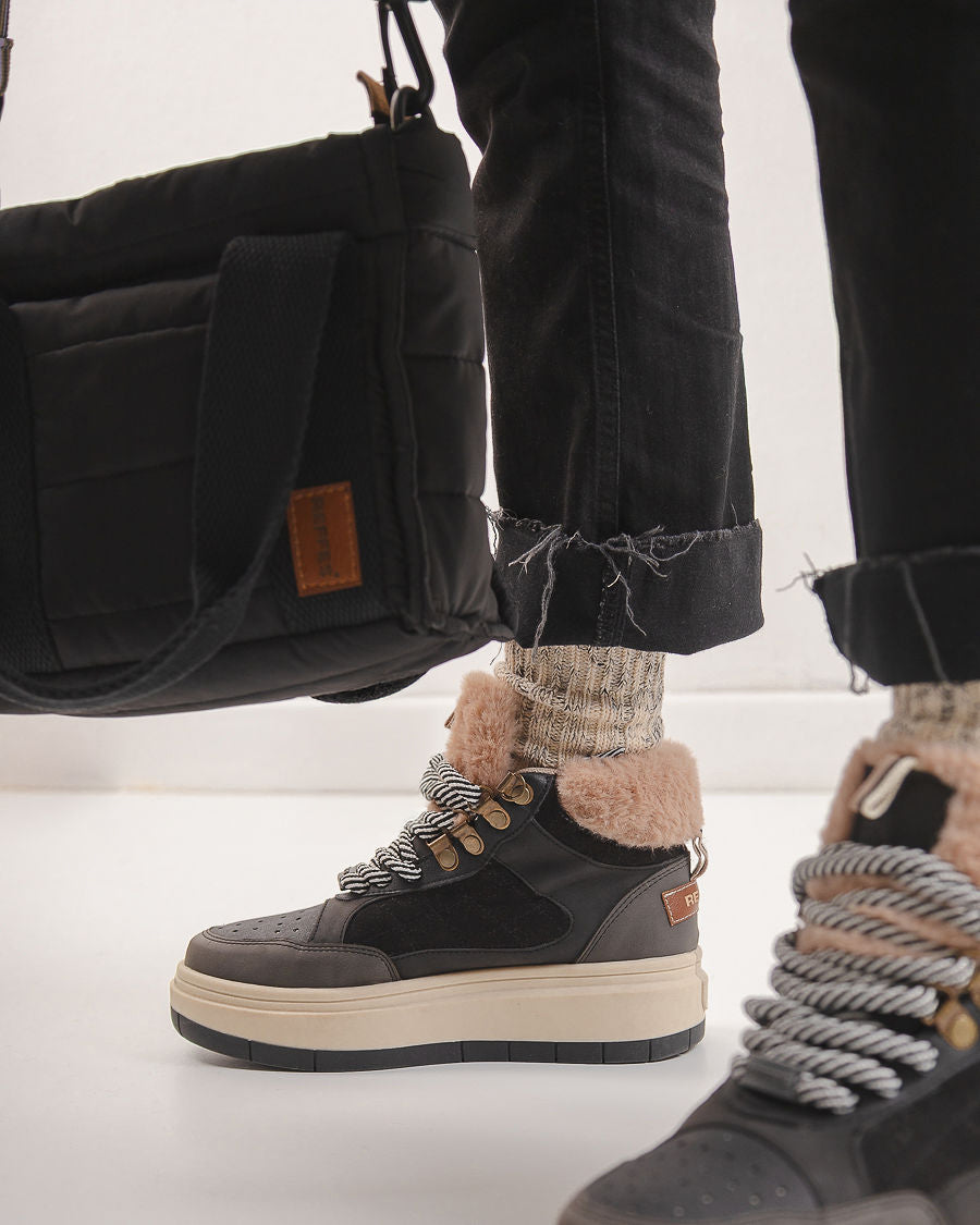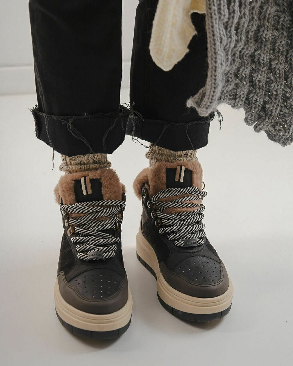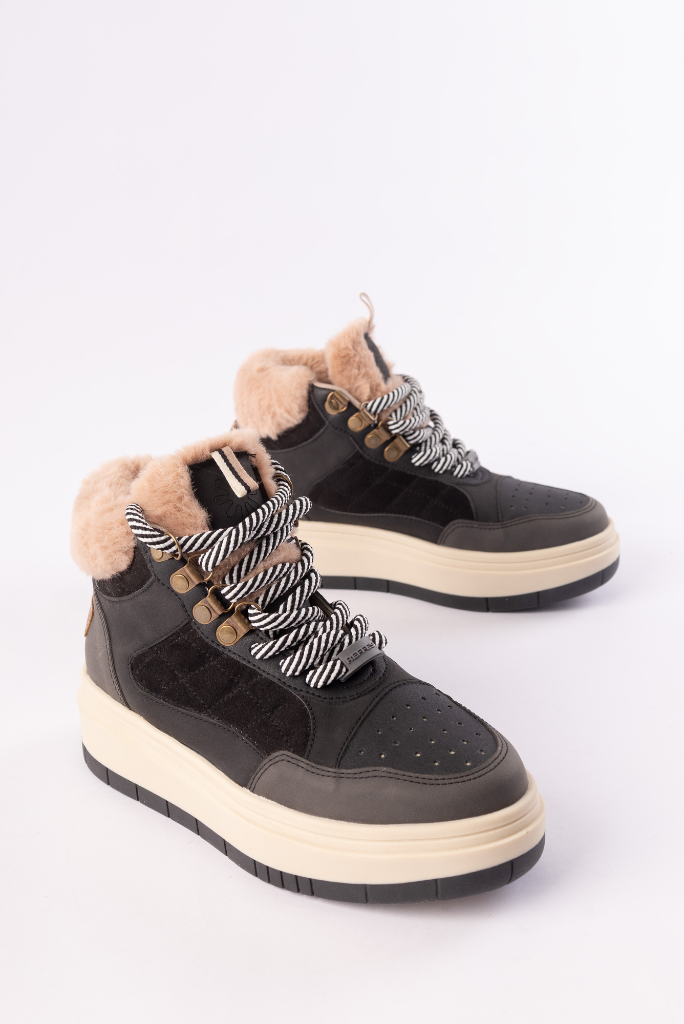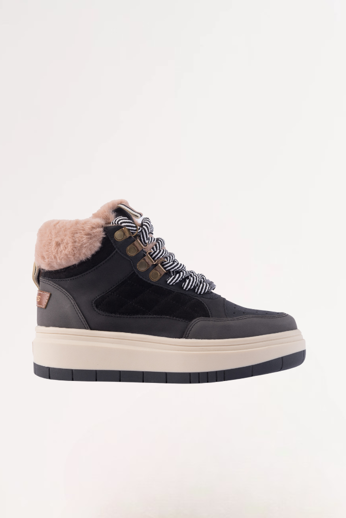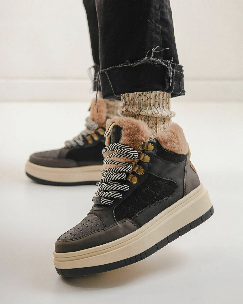 El modelo cuenta con cordones tubulares y elementos de inspiración alpina, evocando la aventura y el espíritu urbano. La suela TR, pegada y cosida, ofrece máxima resistencia, durabilidad y comodidad al caminar.