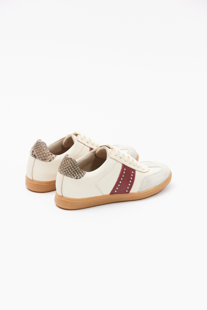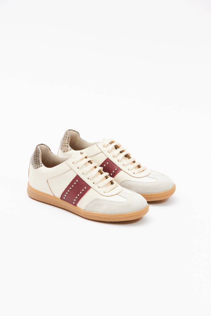 Esta zapatilla baja de cuero combina elegancia y comodidad con un diseño en color y blanco, complementado por cordones a tono que aseguran un ajuste perfecto. Ideal para quienes buscan un calzado versátil y duradero, ofrece un acabado sofisticado que se adapta tanto a looks casuales como más formales. Su confección en cuero garantiza resistencia y confort durante todo el día.